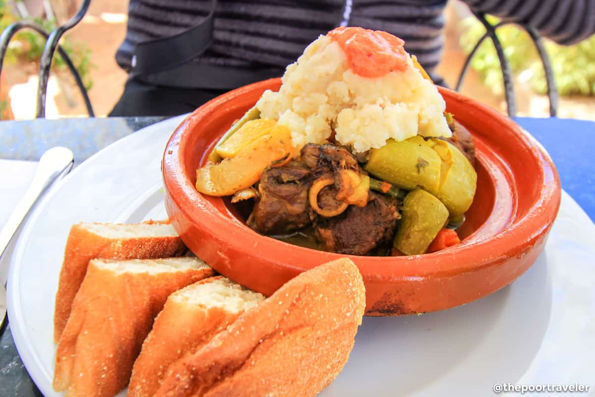 • Tangia. The term refers to the urn-shaped clay pot and the stew that is cooked in it. While the rest of the country is known for tajine, Marrakech in particular takes pride in their tangia, a lamb stew that is oven-cooked for hours. This is the best-tasting lamb that graced my palate in this part of the world. At the same restaurant, we were served sheep’s head, and our group had a Fear Factor moment especially when it was turn to taste the eyes. (You can totally skip this if you’re not that adventurous.)