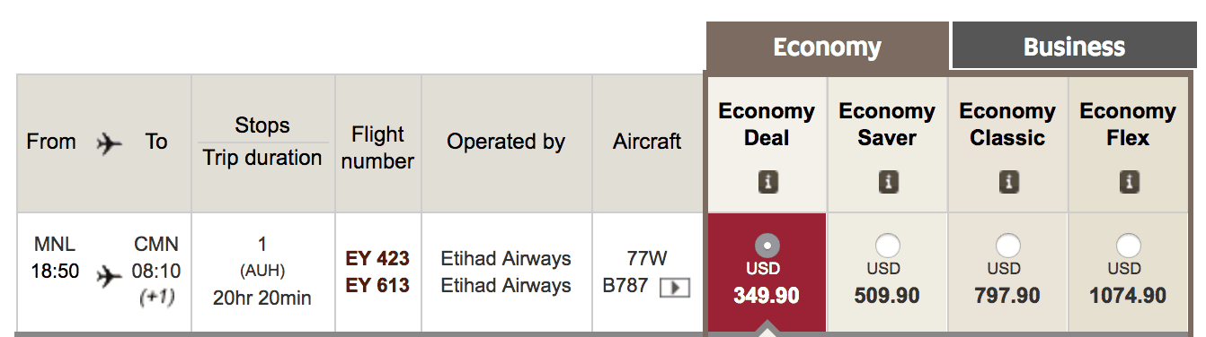 If you’re coming from Manila, our random search revealed that Gulf Air (with stop in Bahrain) and Etihad (with stop in Abu Dhabi) offer the lowest fares! The cheapest I found are Wednesday flights to Casablanca via Etihad, which amounted to only USD696 (PHP37,000) roundtrip and including taxes and fees. One way is only at USD349 (PHP18,500).