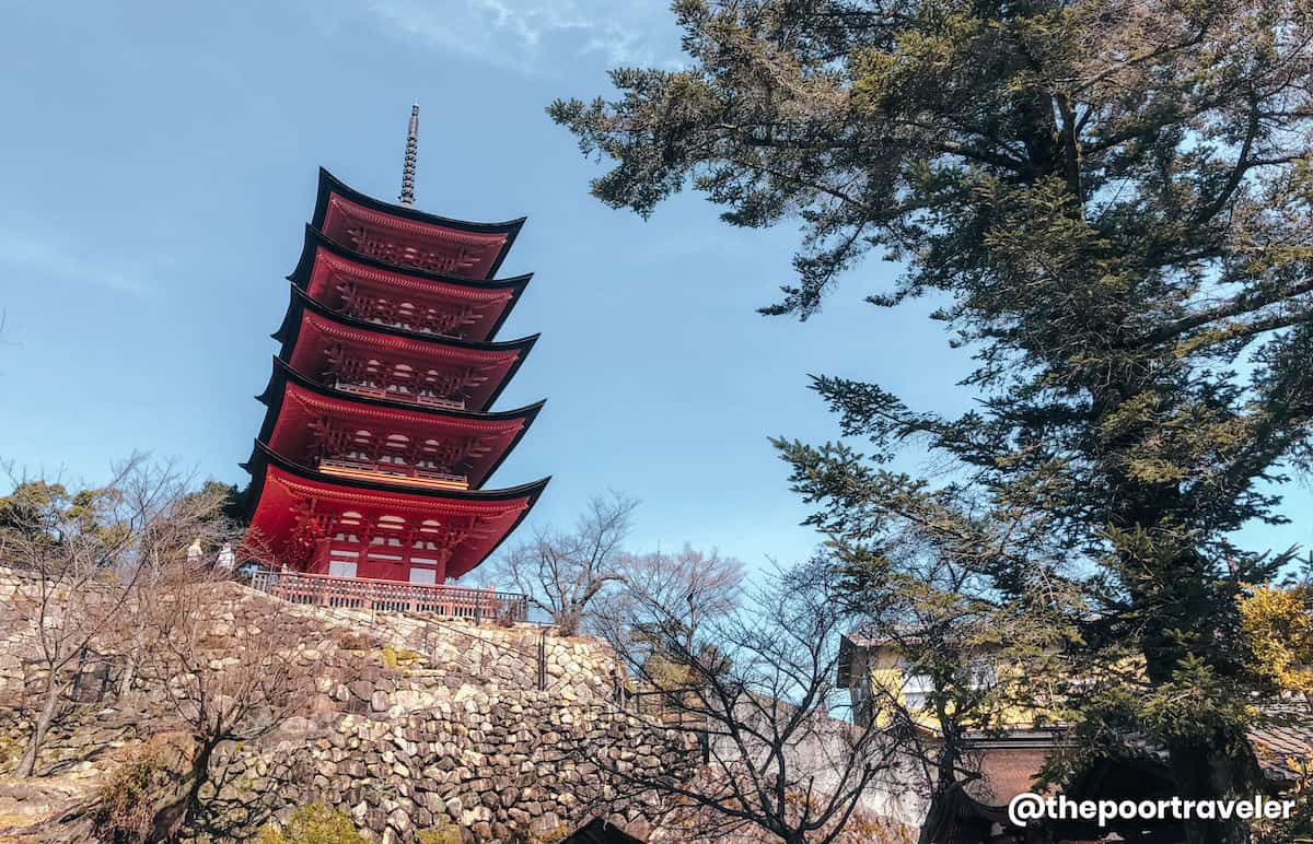 Note: You can view the giant torii gate even without entering the shrine, but if you want to frame it at the center, you have to wait for the water to subside during low tide or pay the entrance fee. - Senjokaku Hall & the Five-Storied Pagoda