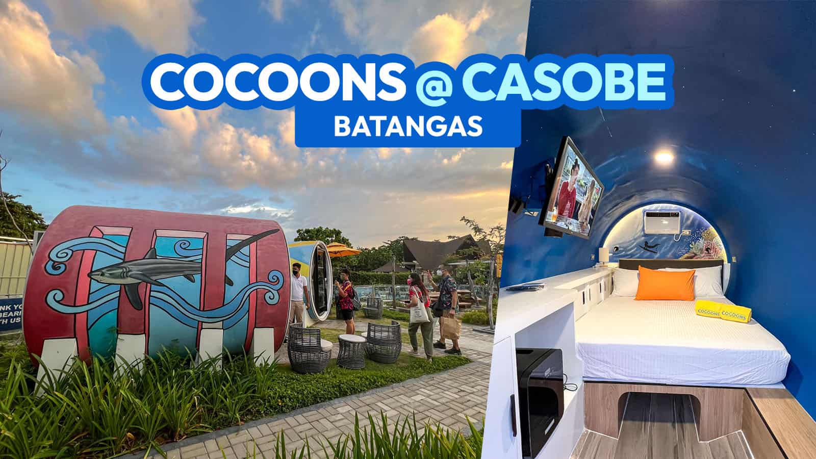 Cocoons at CaSoBe offers fully air-conditioned Garden Cocoons with amenities, good for two pax. Booking a cocoon provides you access to Aquaria Water Park and Calatagan South Beach. These published rates are inclusive of taxes.