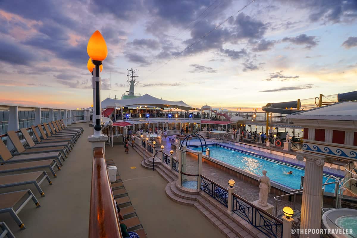 In Manila, the drill happens right before sunset, so as soon as it’s over, head straight to Deck 12 to have a better view. We’ve been to a lot of places around the world, but Manila offers some of the most spectacular sunsets.