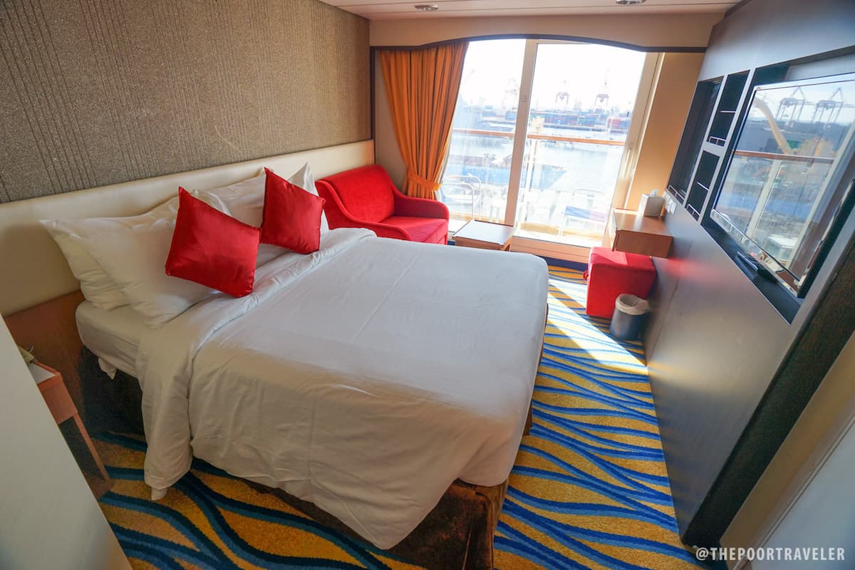 There are four types of accommodations onboard, from the cheapest to the fanciest: Inside Room, Ocean View Room, Balcony Room, and Suite. On our first time, we stayed in an Inside Room; this time in a Balcony Room. In both occasions, the room was always regularly maintained, with multiple cleanups within the day. Complimentary bottles of water also replenish every day.