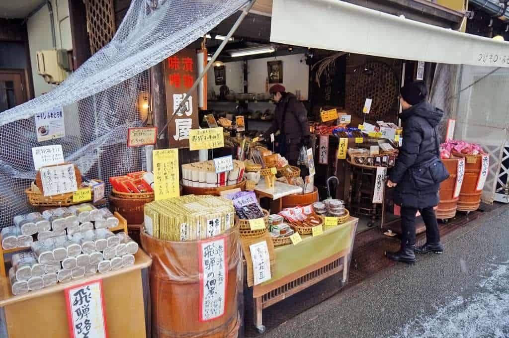 Morning markets had become an integral part of Takayama community throughout time. There are two popular morning markets in Takayama — Miyagawa Morning Market and Jinya-mae Morning Market. Miyagawa is located parallel the Miyagawa River while Jinya-mae is in front of the Takayama Jinya. The products sold are from the local farmers and artisans. Enjoy your morning stroll and interact with the locals. I had fun sampling products and shopping here!