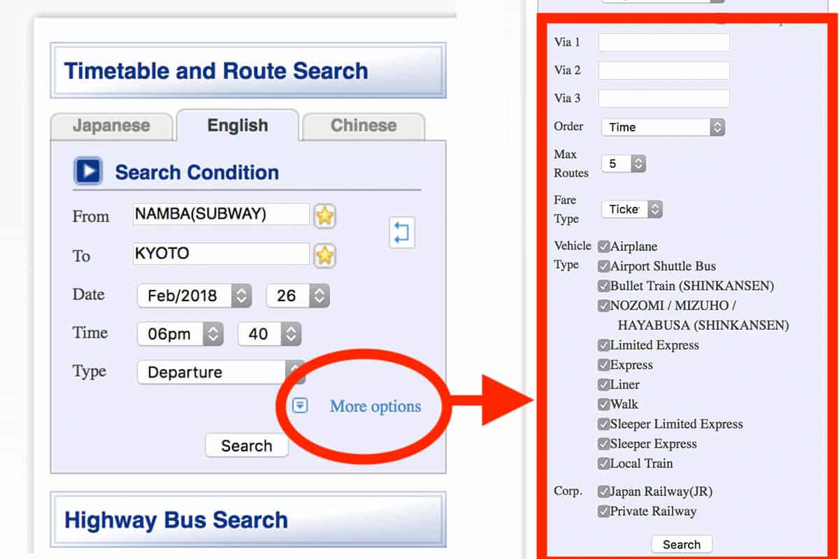 You can also include or exclude a transportation type. By default, all transportation modes are checked including airplanes and buses. If you just want train options, you can deselect them. You can also exclude Shinkansen if you think it’s too expensive for you.