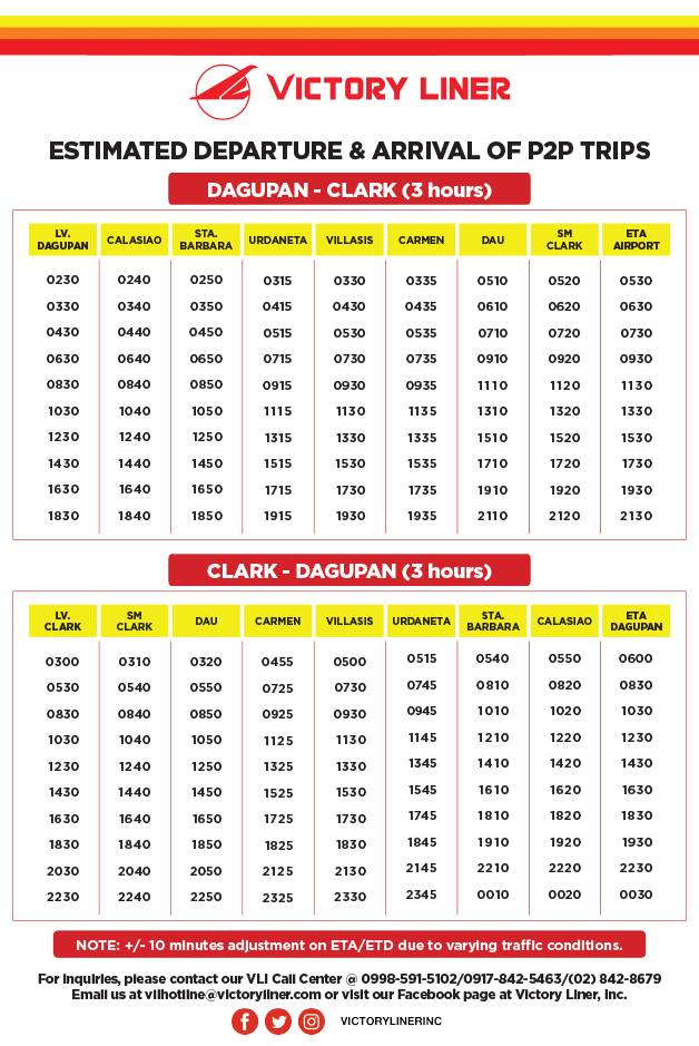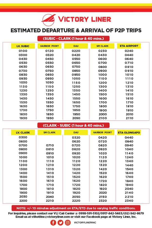 We created a more detailed post here: P2P BUS CLARK & MANILA: Schedule, Stops & Fares