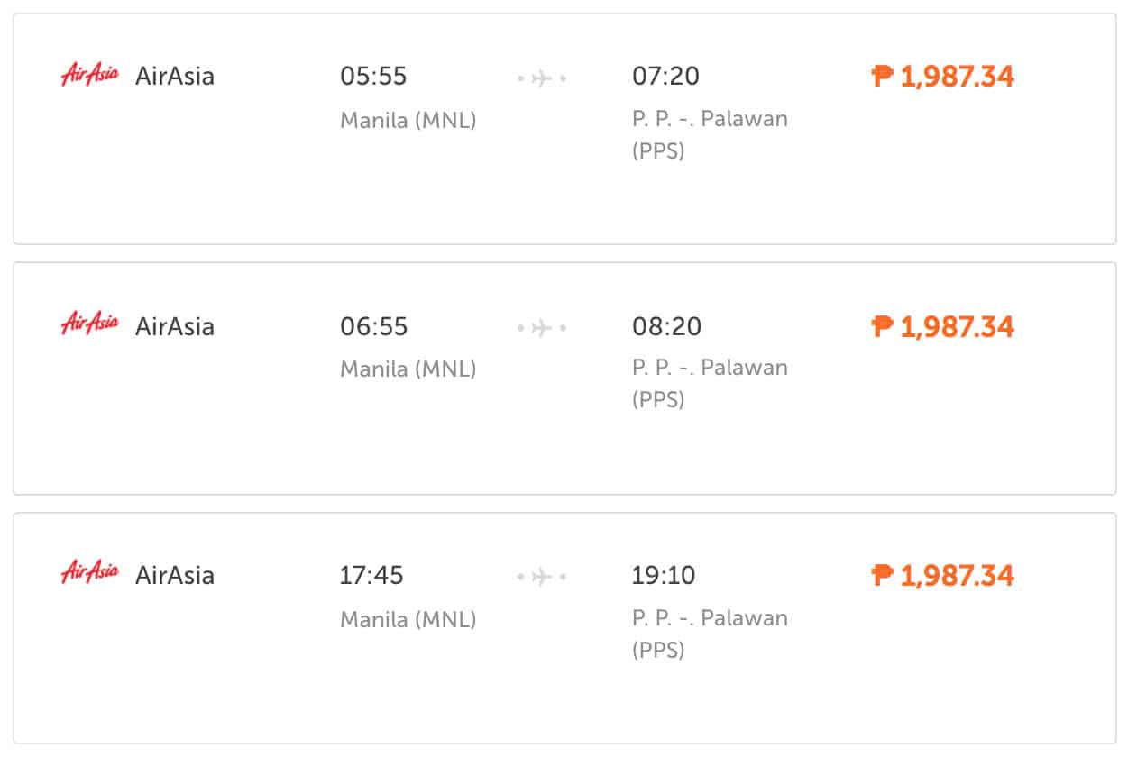 Below is a quick random scan of Manila-Puerto Princesa flights on Traveloka.
