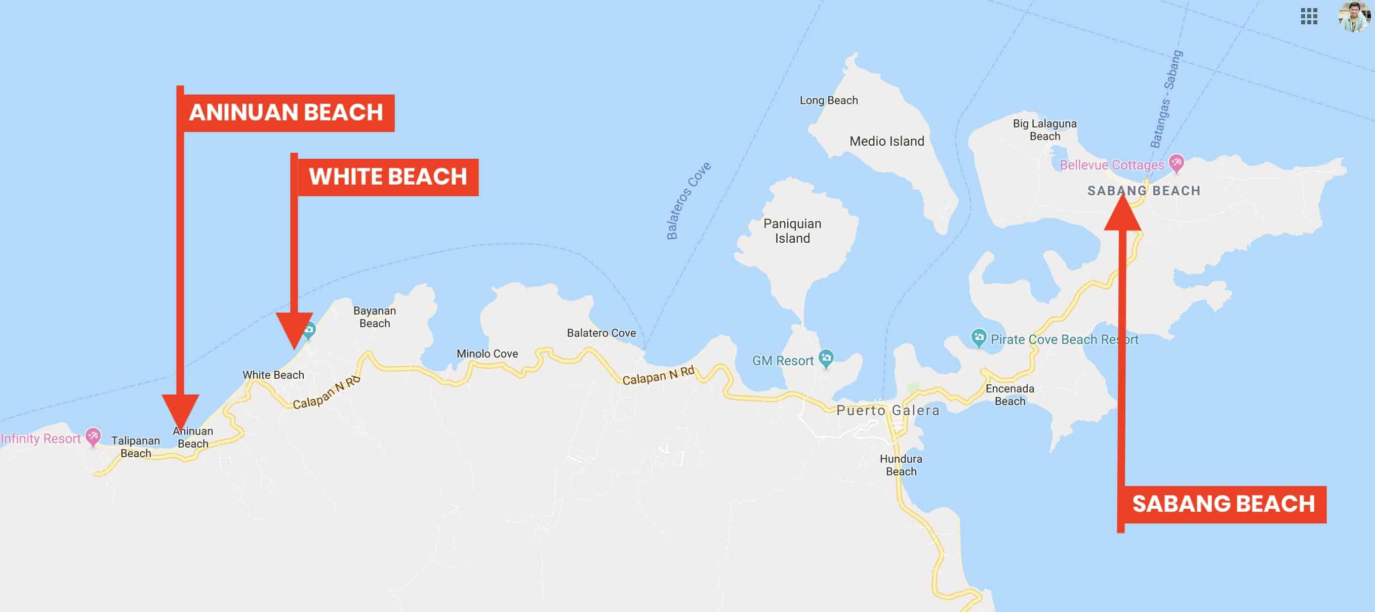 - Sabang Beach. A little bit detached from the first two coves, but it also harbors lots of accommodations. This is a great base for divers because of the number of dive resorts.