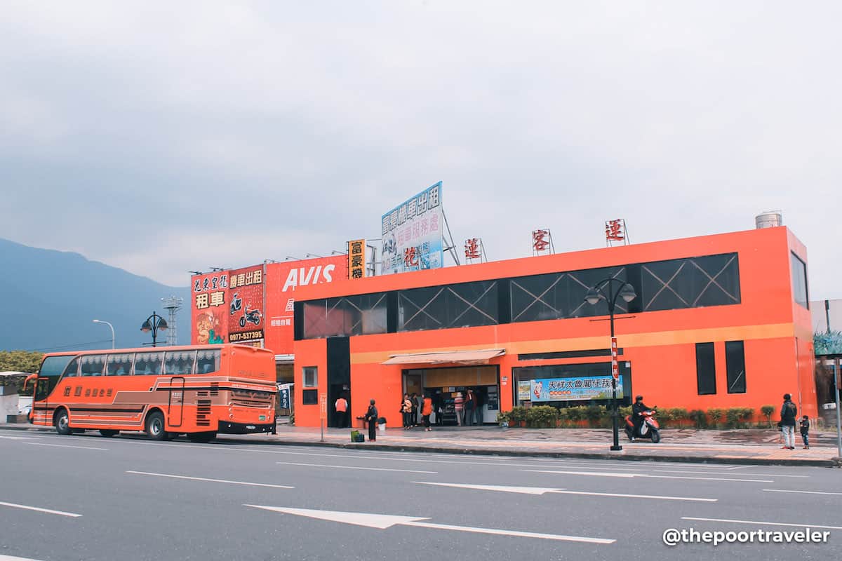 The tickets can be purchased at the bright orange building next to Hualien train station.