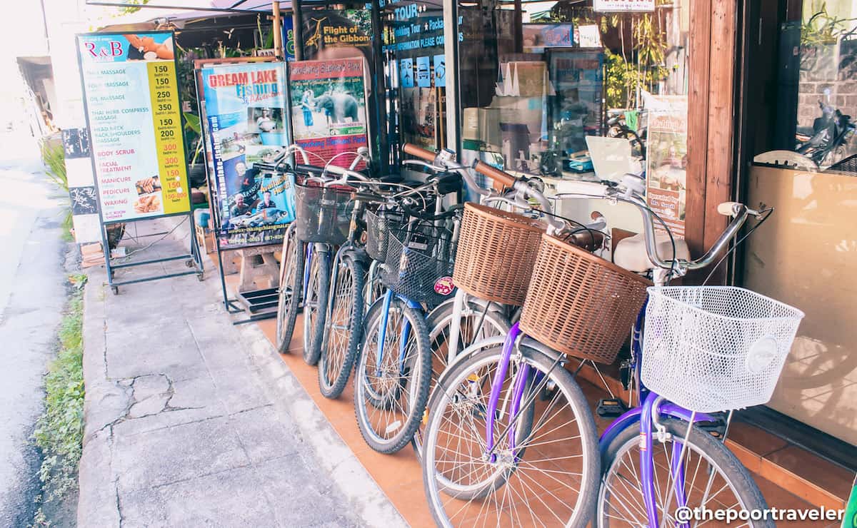 - By Bicycle. Rent is ฿50-250 per day, depending on bike type. Find a shop that also offers a helmet even when it costs more.