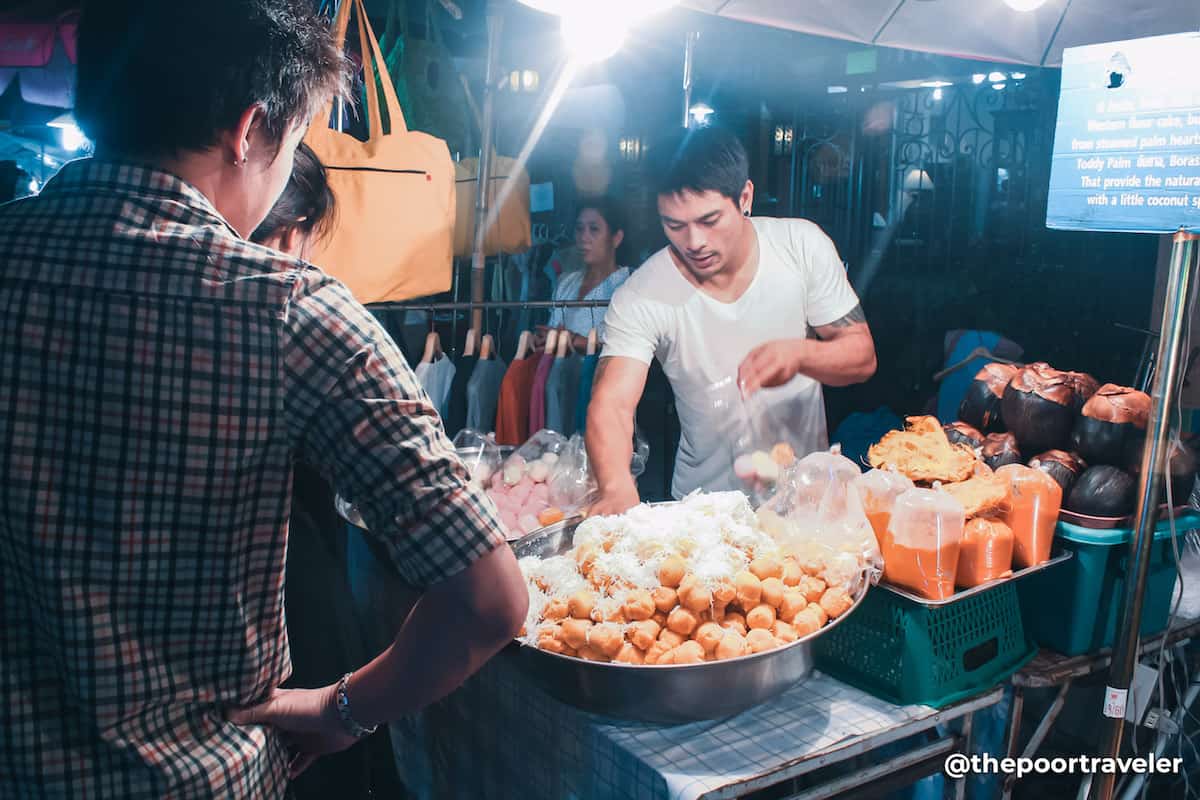 Mobile pork barbeque carts roam around. Small kiosks serving irresistible plates of pad thai and drool-worthy bowls of tom yum are just a short walk away. And the weekend night market comes to life when lanes of food stalls begin taking shape.