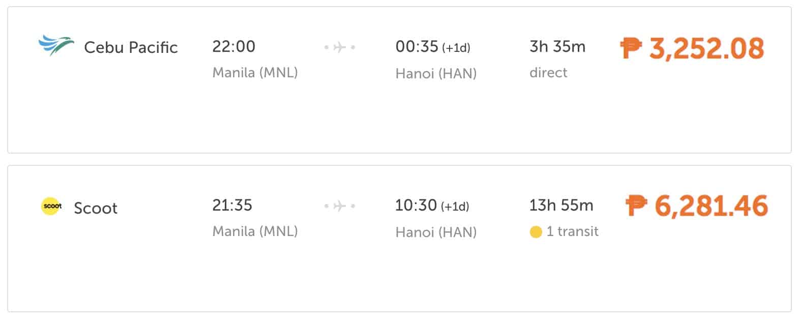 Cebu Pacific is the only airline that flies directly from the Philippines to Hanoi. If you book in advance, you can find fares for as low as P3500, one-way.