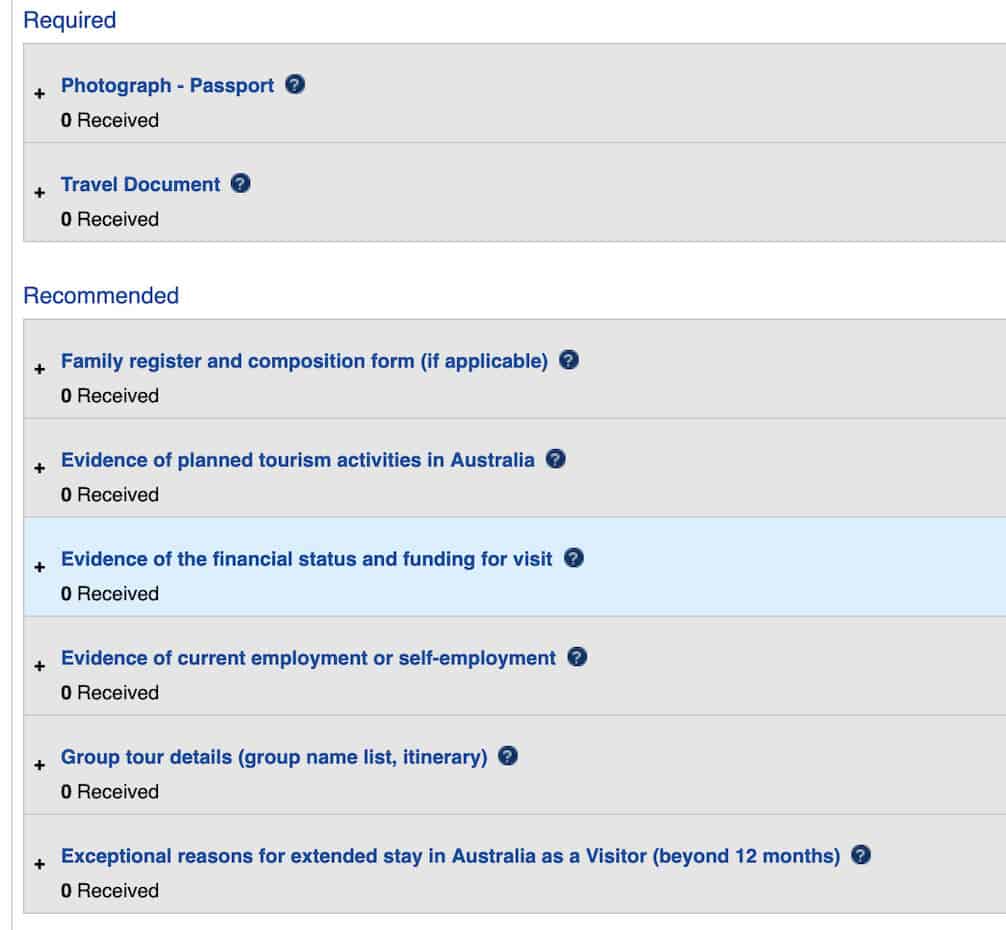 - Some documents don’t apply to everyone. I tried changing some answers to check if it would affect the list of requirements and I found that it did. Therefore: The list of requirements vary depending on your answers to the questions in the form. For example, when I applied for myself and my mom, I wasn’t required to submit proof of travel history but my mom was.