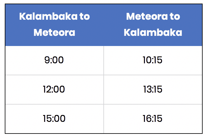 As you can see, there are only a few buses per day, so you won’t be able to see all the monasteries if you’re relying on the bus. What most tourists do is they take the bus going up and then they just explore the place on foot, then they take the last bus back to Kalambaka. Ideally, you should be able to visit 2-3 monasteries in a day. Although it is possible to see more than 3 in a day, the pace may be too fast or stressful.