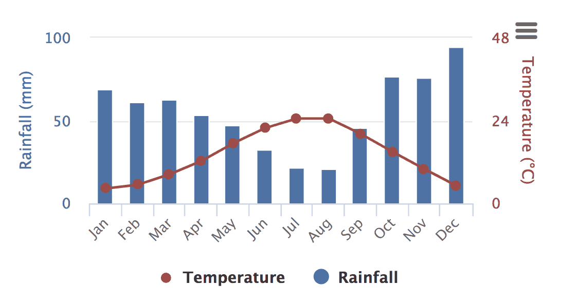 July to October is high season, so rates in Greece in general are higher and the site is overrun by tourists. July and August are the driest and the hottest months.